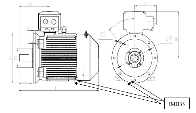 B35—機(jī)座帶底腳、端蓋有凸緣;